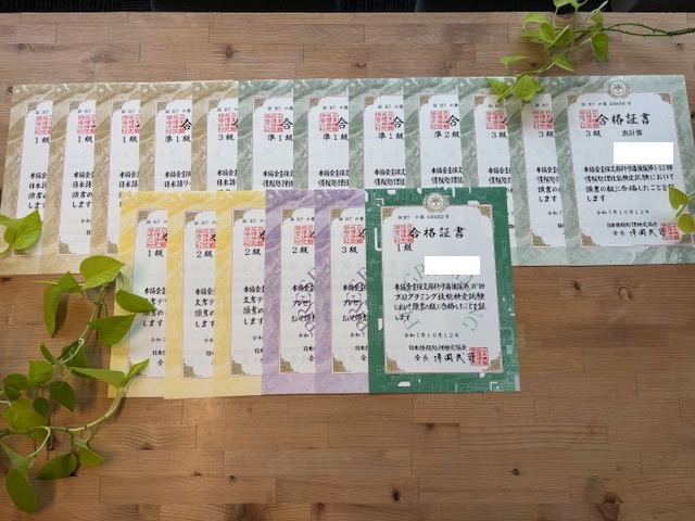 10月に行われました情報処理検定の合格証書が皆様のもとに届きました