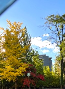 銀杏の木が黄色く色づき