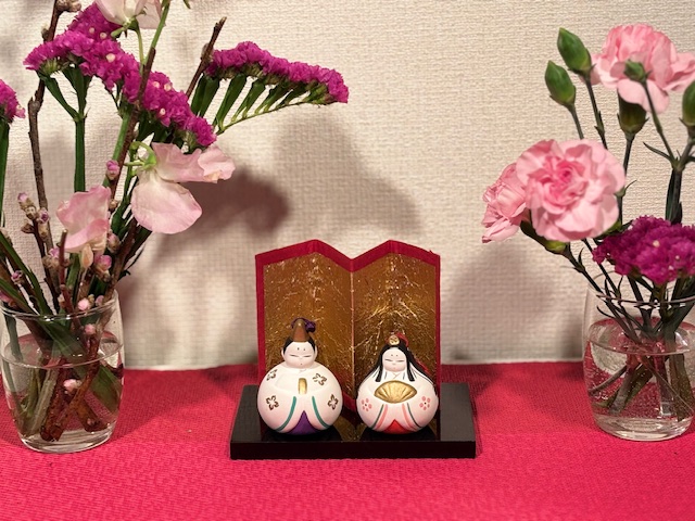 ワークライズのエントランスにも可愛い土鈴のお雛様が飾られています